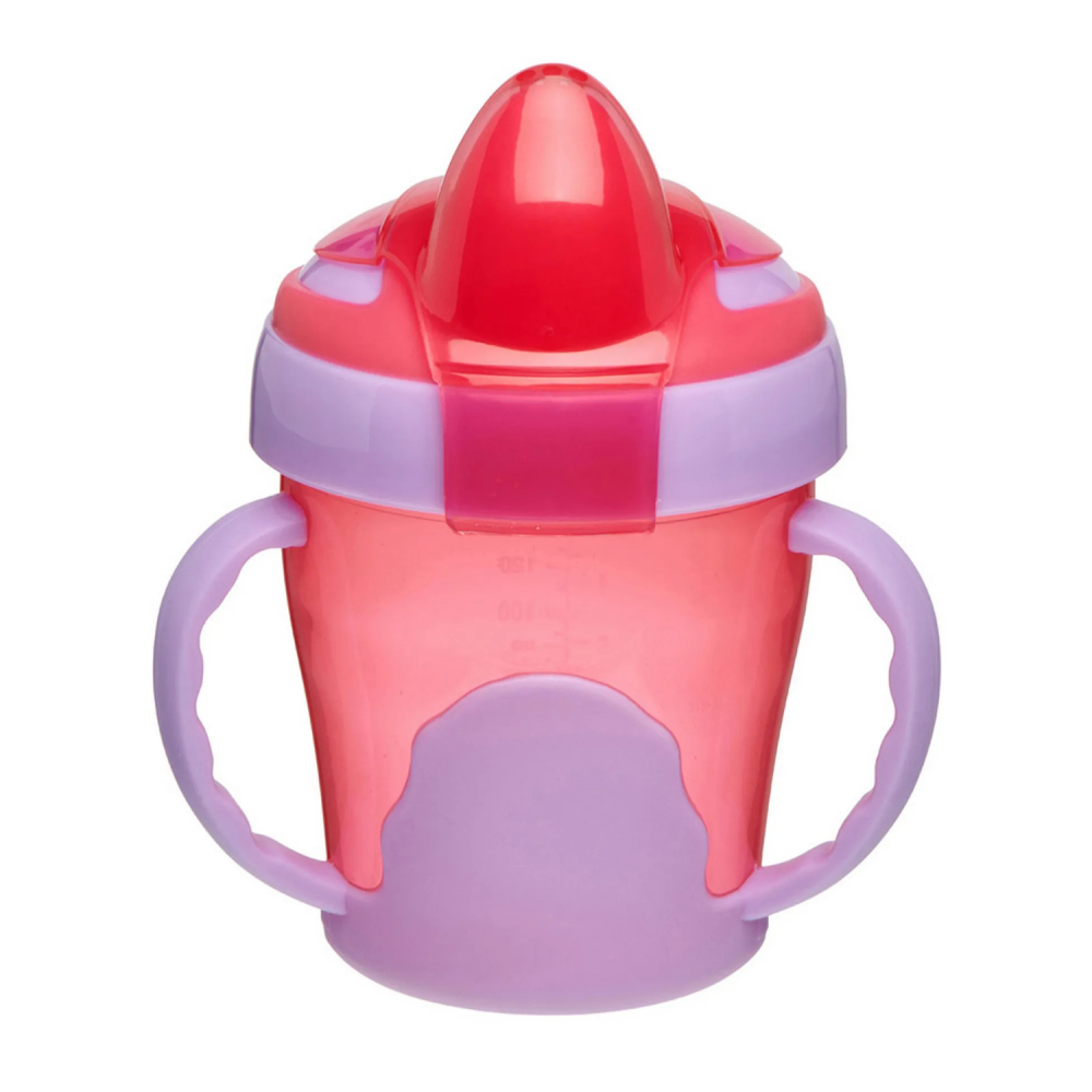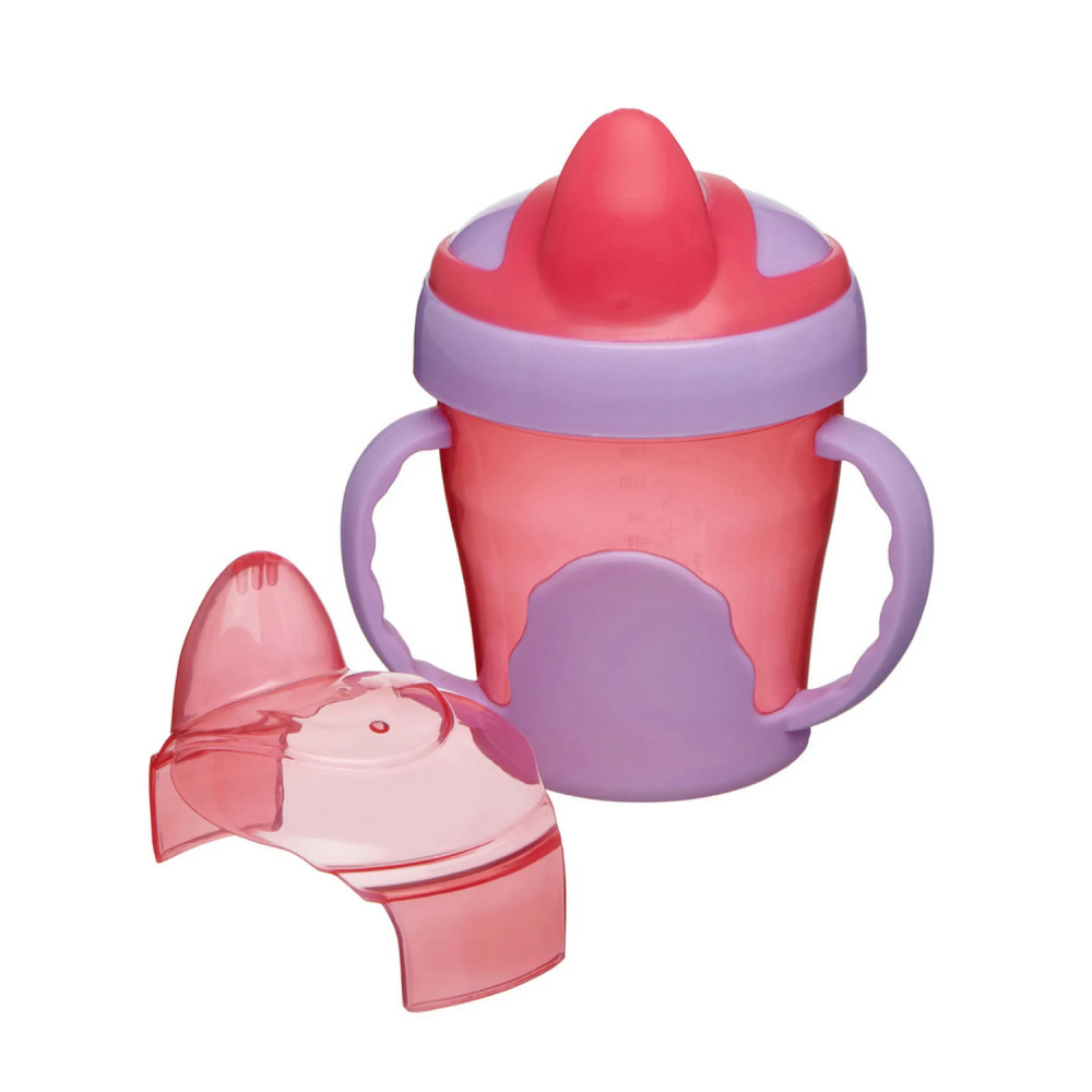 كوب تدريب الأطفال بمقابض هو الكوب المثالي لتعليم طفلك على حمل الكوب واستخدامه بمفرده. فهو يحتوي على فوهة شرب لينة جيدة لحماية لثة الطفل الحساسة ويمكن استخدامها بدون انسكاب أو تدفق حر، وذلك عن طريق إزالة الصمام المرفق ببساطة. المقابض المائلة مصنوعة من خامة لينة تمكن الطفل من الإمساك بالمقابض بثقة وسهولة.